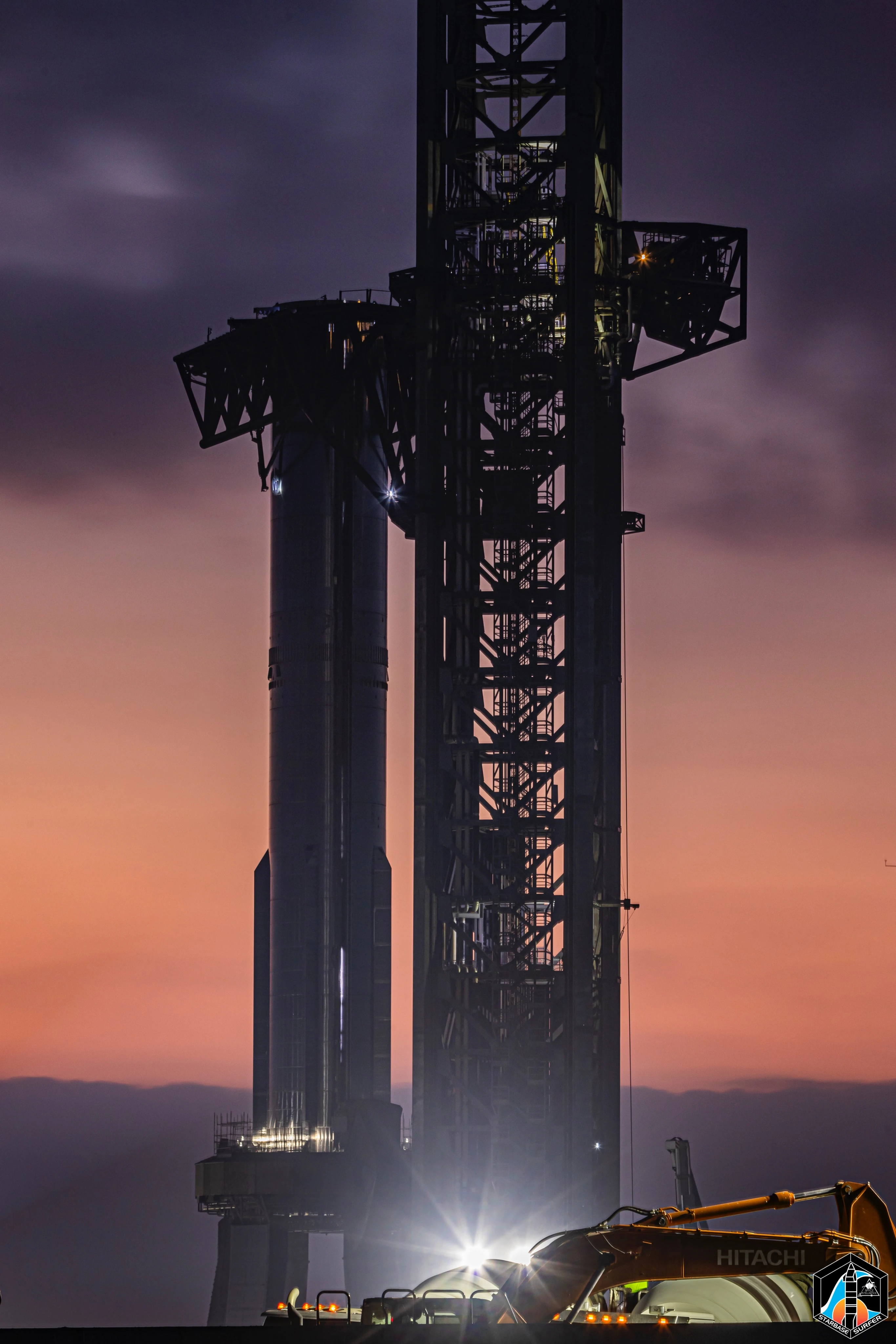Stacking of Booster 15 was completed on the front left turntable in Mega Bay 1 on the 22nd of September 2024. Booster 15 was rolled out to the Massey Outpost for cryo testing on the 21st of December 2024, where it completed a CH4 cryo on the 27th and a complete cryo on the 28th prior to rollback on the 29th. B15 was then rolled out to the Launch Site on February 8th 2025 for engine testing, which was completed on the 9th with a full 33 engine static fire, followed by rollback to Mega Bay 1 on the 10th.